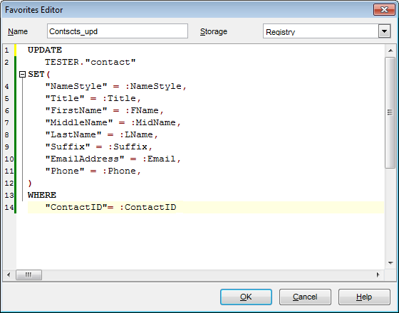 Favorite Queries node of Database Explorer and allows you to store the most frequently used SQL queries in one location.