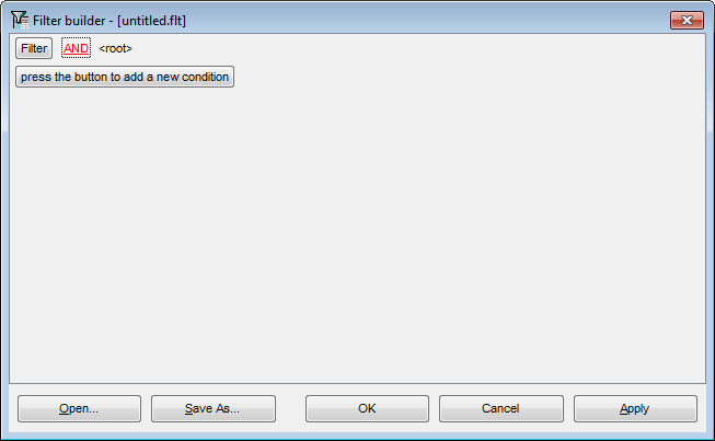 Click press the button to add a new condition - this will add a new condition to the criteria. Alternatively, you can click the Filter button and select the Add Condition popup menu item.