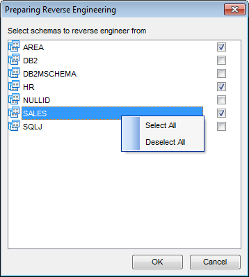 For your convenience the Select All and Deselect All items are available in the context menu of the schemas list.