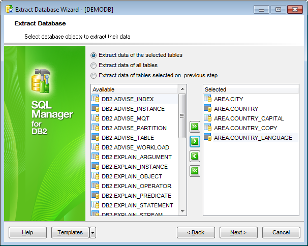 buttons or drag-and-drop operations to move the tables from one list to another.