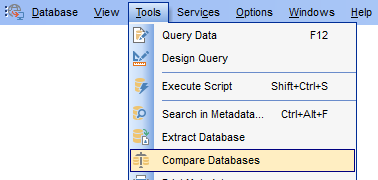 Compare Databases Wizard creates an SQL script that provides database structure synchronization. To launch the wizard use the Tools |