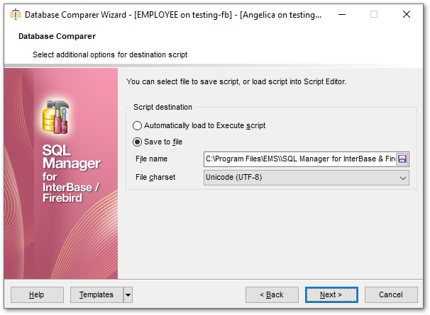 This group of options allows you to specify whether the result SQL script will be automatically loaded to Execute Script Editor or saved into a file.