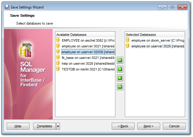 To select a database, you need to move its alias from the Available Databases list to the Selected Databases list. Use the