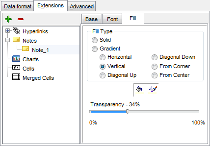 The Fill tab allows you to specify the fill type and transparency for the note.
