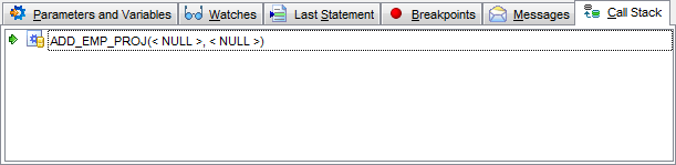 Use this tab to see the stack (ordered log) of the procedure calls.