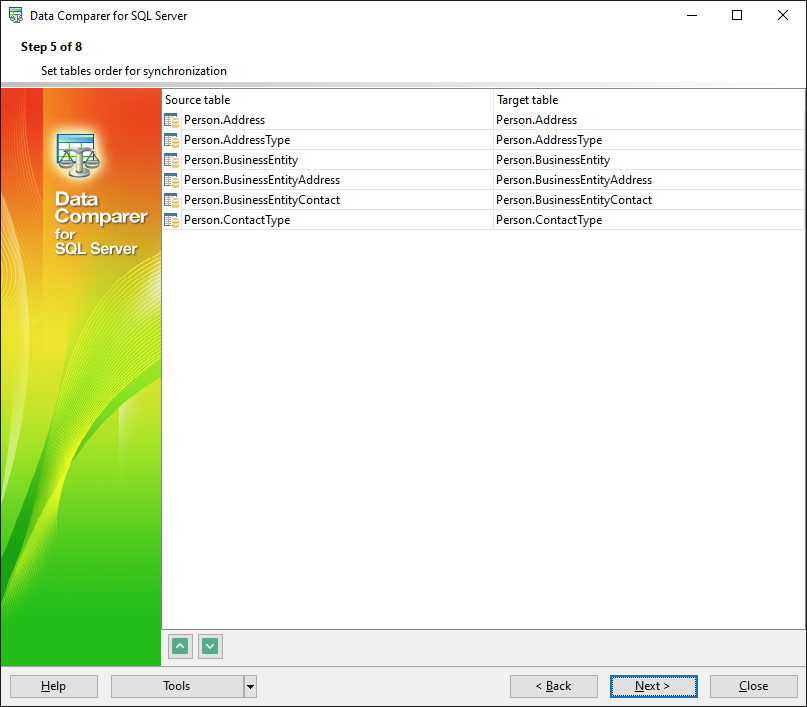Data Comparer for SQL Server includes a graphical wizard that will guide you through the SQL Server data comparison and synchronization process step by step, and a command-line utility for synchronizing SQL Server data in one-touch.