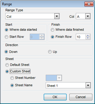 Use this group to define whether the specified range will be taken from the default Excel sheet or from a custom sheet (select sheet number or sheet name using the corresponding drop-down lists).