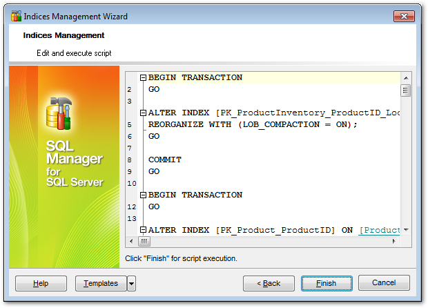 Click the Finish button to execute the result script and complete the operation.