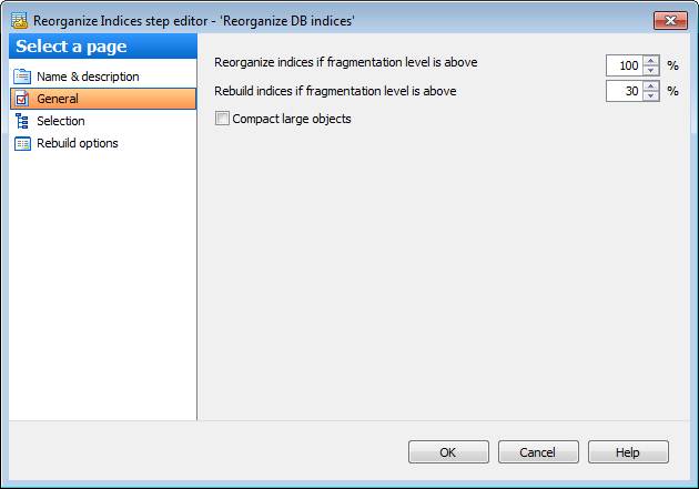 Define the fragmentation limits. Exceeding this limits considers the indices to be rebuilt.