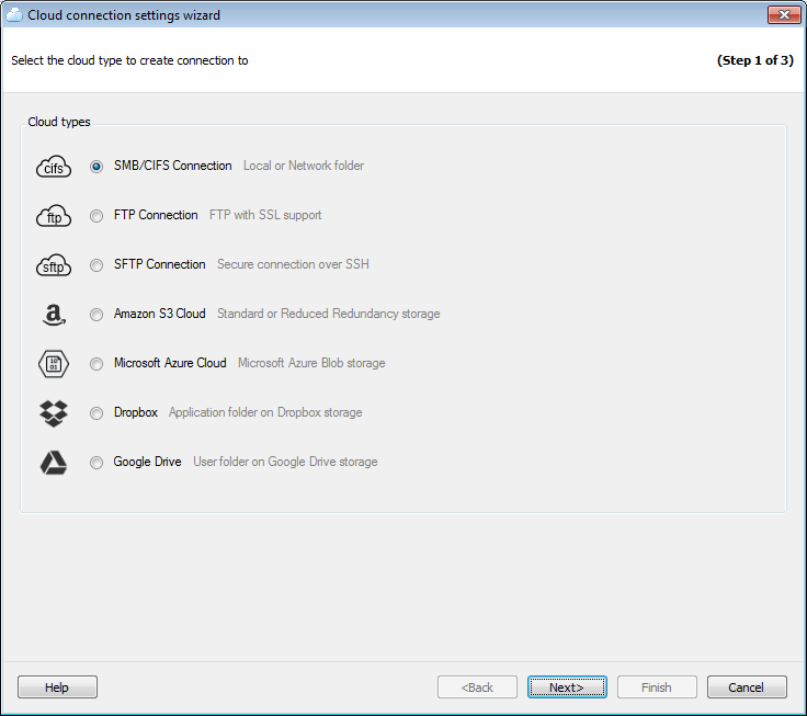 - You can use FTP, SFTP, SMB/CIFS, Dropbox for all license types, including Free license.