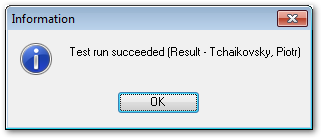 If the execution succeeds you see the message box with the result as it is shown on the picture below.