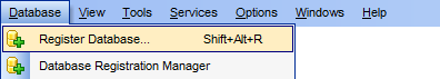 To start the wizard, select the Database | Register Database... main menu item, or use the Register Database btnRegisterDB button on the main toolbar. You can also use the Shift+Alt+R shortcut for the same purpose.