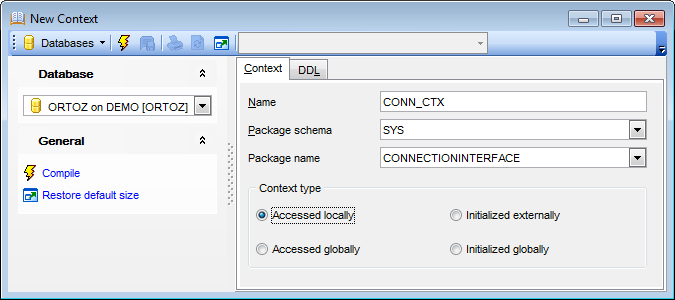 Use the Context tab of Context Editor to create/edit a context namespace and specify its properties.