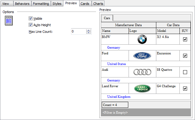 The Preview tab of the Format Report dialog allows you to specify report preview options.